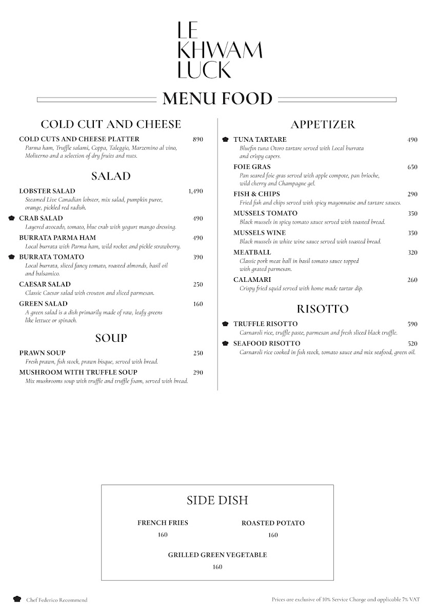 Welcome to Le Khwam Luck Cafe Bar and Restaurant (เลอความลค คาเฟ บาร แอนด เรสเตอรรอง), a culinary haven nestled in Bangkok's vibrant Ekkamai area. This charming eatery harmoniously fuses exquisite Thai and Italian cuisines, presenting a diverse menu that will tantalize your palate.